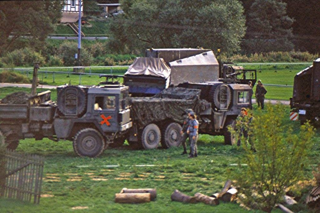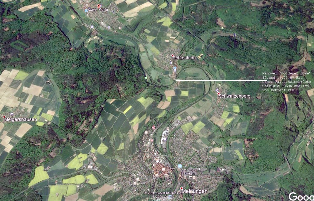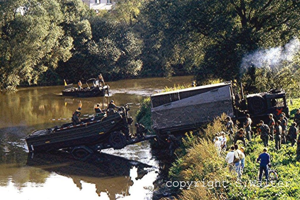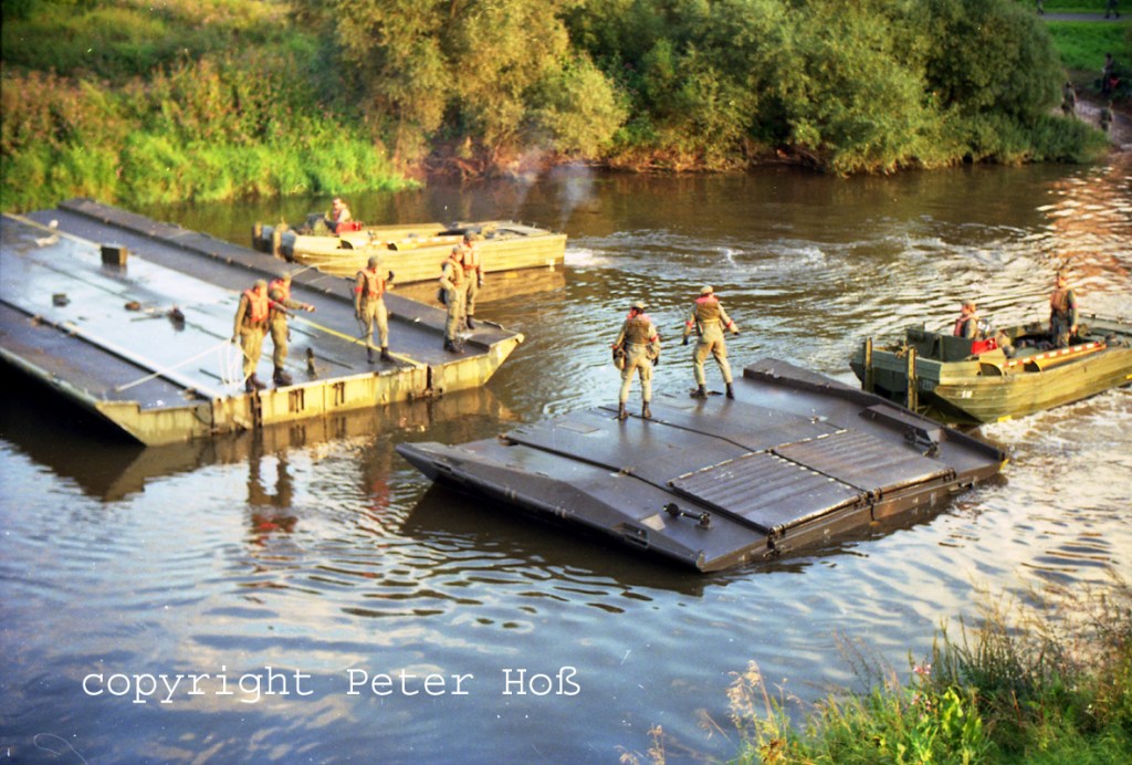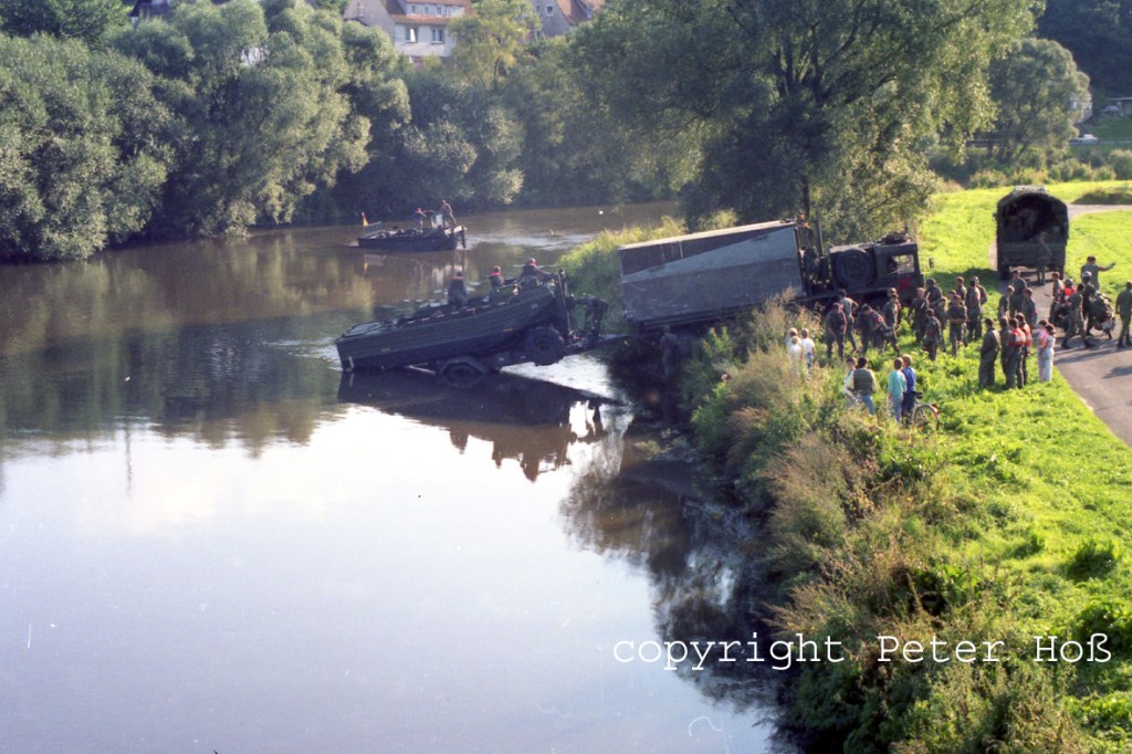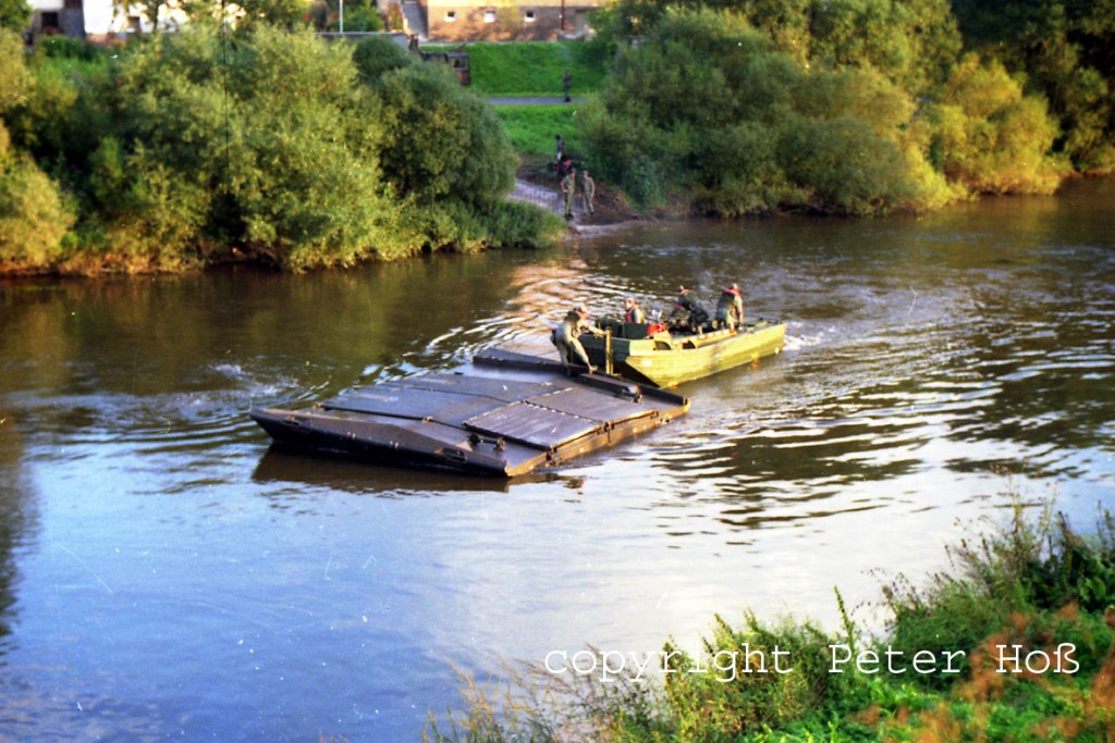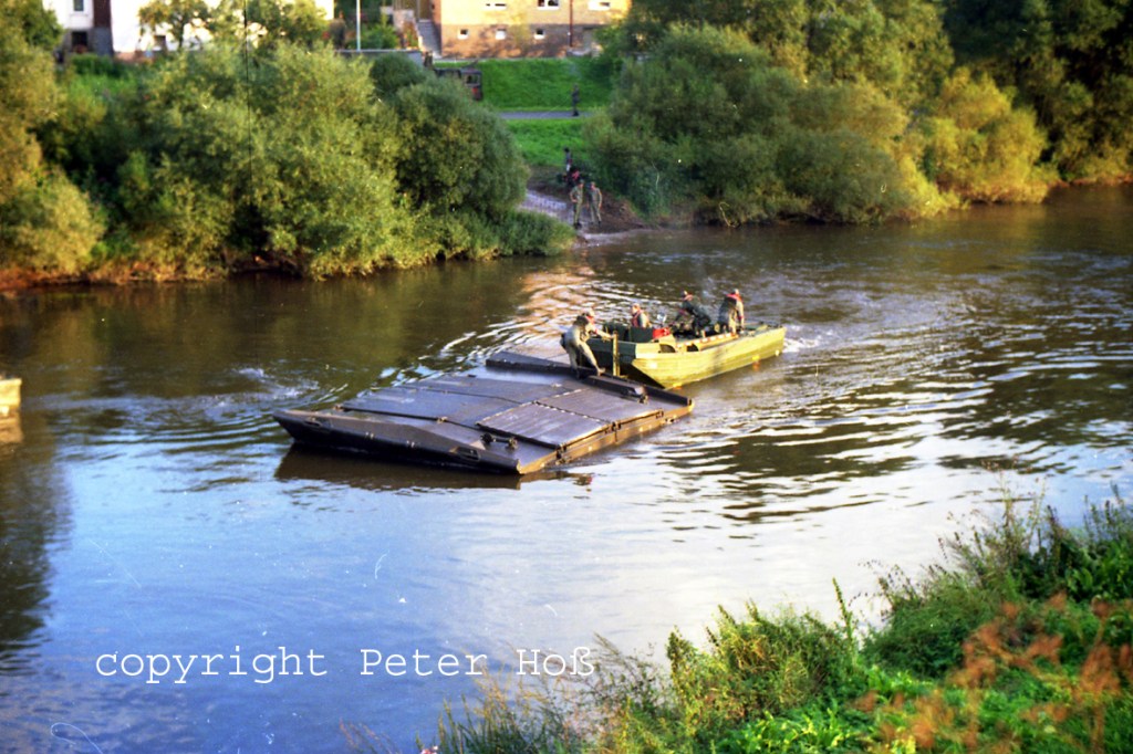 Am 12.und 14.09.1987 baute die 5.Kp des Pionierbataillon 5 Übungstruppe ROT einen Übergang mit der Faltschwimmbrücke FSB über die Fulda südlich von Röhrenfurth.