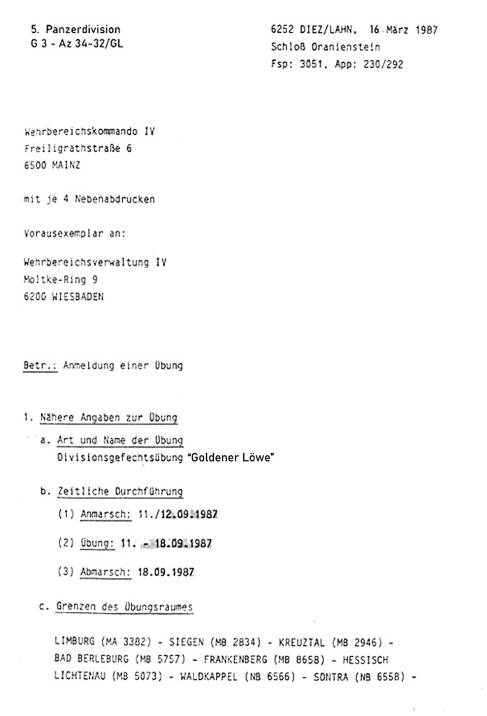 Die Divisionsgefechtsübung „Goldener Löwe“ unter Führung der 5. Panzerdivision lief vom 10. bis 18. September im Raum Südniedersachen und Nordhessen. An der Übung waren 16 400 deutsche und 5600 US-Soldaten beteiligt.