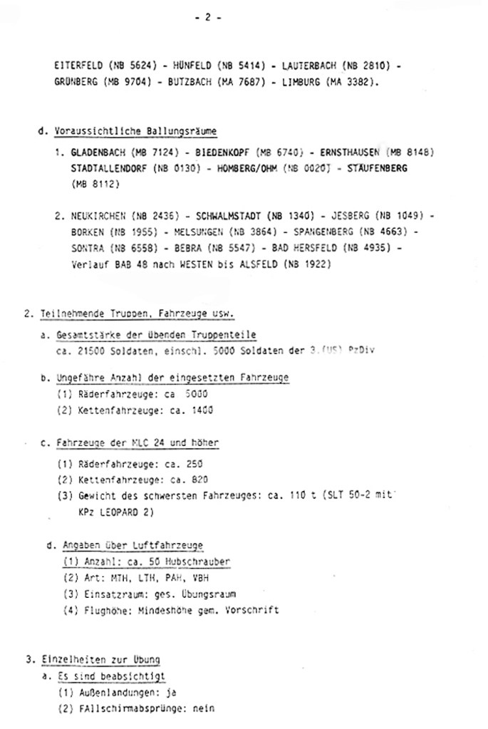 Pressemeldung in der Hessischen Allgemeinen -Seite Hessen- am 14.09.1987 über den Manöverbeginn.