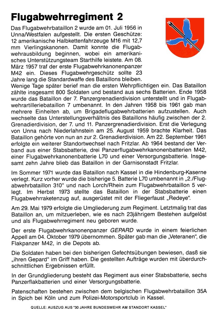 Umgliederung des Flugabwehrbataillon 2 zum Flugabwehrregiment 2 (FlaRgt)