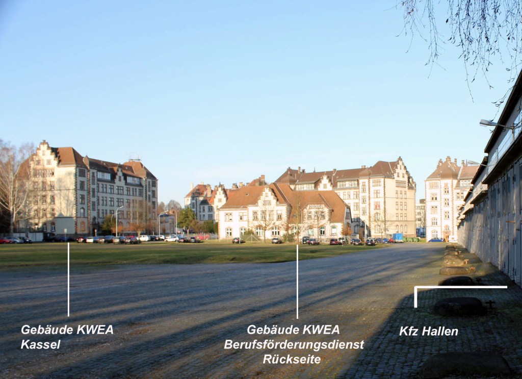 Im unteren Teil der Jäger-Kaserne befand sich das Kreiswehrersatzamt Kassel und der Berufsförderungsdienst, nachfolgende Luftaufnahme (Quelle Wikipedia) zeigt eine Gesamtübersicht der Anlage.