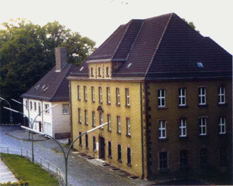 Foto unten: Das als Stabsgebäude genutzete Gebäude der Panzergrenadierbrigade 5 (PzGrenBrig 5) im oberen Teil der Jäger-Kaserne Bosestraße 7 (Bildnachweis: entnommen aus Chronik PzGrenBrig 5).