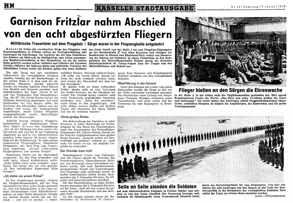 Weitere Einzelheiten siehe nachfolgende Pressemeldung in den Hessischen Nachrichten -Kasseler Stadtausgabe- vom 15.Januar 1959.